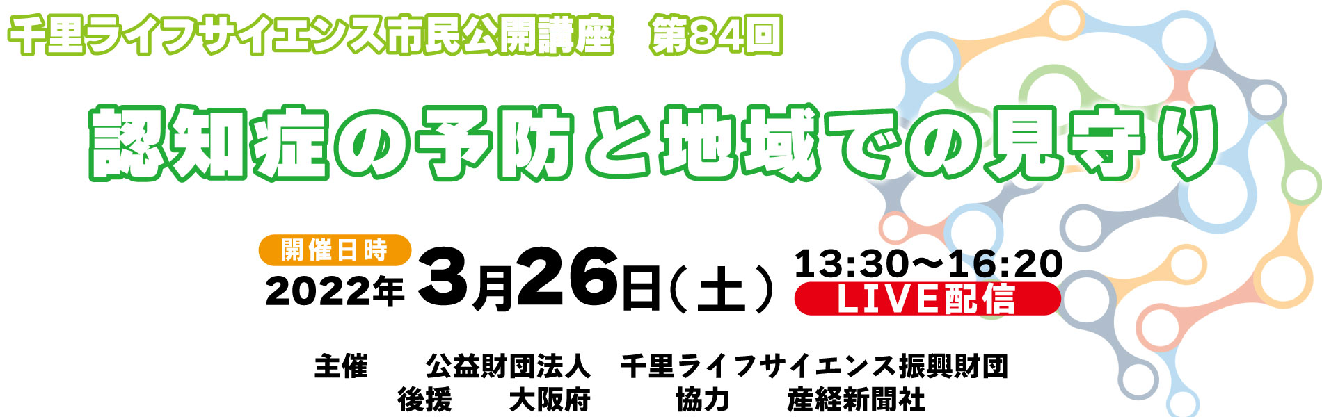 千里ライフサイエンス市民公開講座 第84回 「認知症の予防と地域での見守り」 のライブ配信は終了いたしました。
